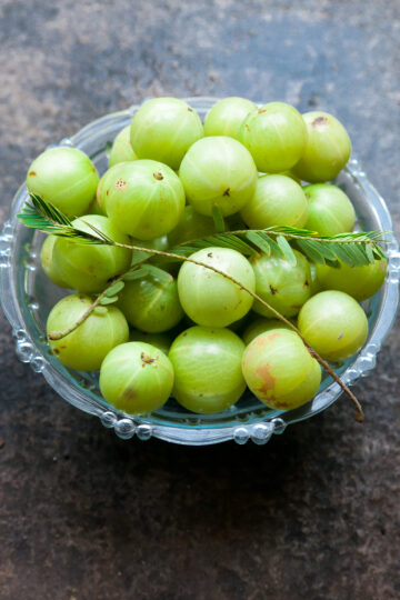 Parboil or steam fresh Amla to mellow its sourness before using in savory dishes